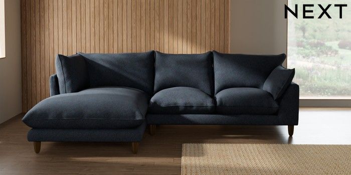 7.2.10 Buy Noa Deep Relaxed Sit Medium Corner Chaise - Left Hand Tweedy Chenille Navy Blue High Leg - Light from the Seasons online shop Click here to use our website with more accessibility support, for example screen readers