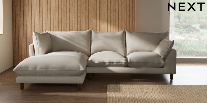7.2.10 Buy Noa Deep Relaxed Sit Medium Corner Chaise - Left Hand Tweedy Chenille Oyster High Leg - Light from the Seasons online shop Click here to use our website with more accessibility support, for example screen readers