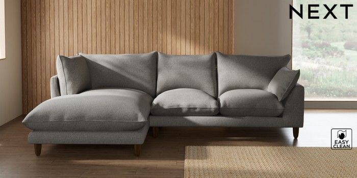 7.2.10 Buy Noa Deep Relaxed Sit Medium Corner Chaise - Left Hand Woven Chenille Easy Clean Light Grey High Leg - Light from the Seasons online shop Click here to use our website with more accessibility support, for example screen readers
