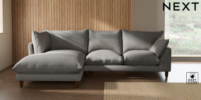 7.2.10 Buy Noa Deep Relaxed Sit Medium Corner Chaise - Left Hand Woven Chenille Easy Clean Light Grey High Leg - Mid from the Seasons online shop Click here to use our website with more accessibility support, for example screen readers