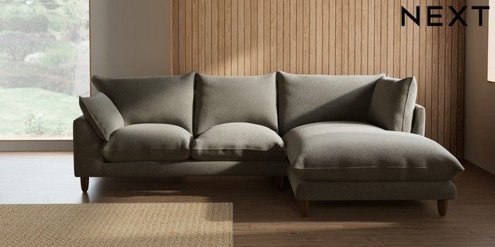 7.2.10 Buy Noa Deep Relaxed Sit Medium Corner Chaise - Right Hand Chunky Marl Light Olive Green High Leg - Mid from the Seasons online shop Click here to use our website with more accessibility support, for example screen readers