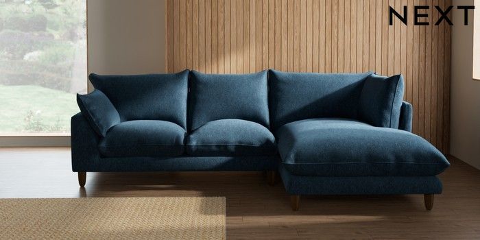 7.2.10 Buy Noa Deep Relaxed Sit Medium Corner Chaise - Right Hand Cotswold Chenille Dark Blue High Leg - Mid from the Seasons online shop Click here to use our website with more accessibility support, for example screen readers