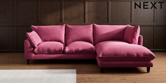 7.2.10 Buy Noa Deep Relaxed Sit Medium Corner Chaise - Right Hand Cotswold Chenille Dark Raspberry Pink High Leg - Dark from the Seasons online shop Click here to use our website with more accessibility support, for example screen readers