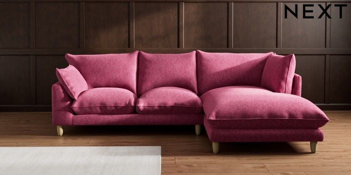 7.2.10 Buy Noa Deep Relaxed Sit Medium Corner Chaise - Right Hand Cotswold Chenille Dark Raspberry Pink High Leg - Light from the Seasons online shop Click here to use our website with more accessibility support, for example screen readers