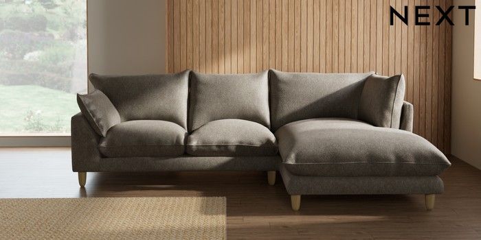 7.2.10 Buy Noa Deep Relaxed Sit Medium Corner Chaise - Right Hand Cotswold Chenille Mid Mink Brown High Leg - Light from the Seasons online shop Click here to use our website with more accessibility support, for example screen readers