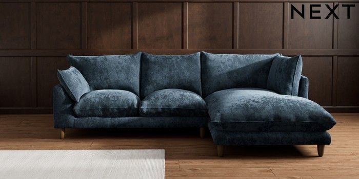 7.2.10 Buy Noa Deep Relaxed Sit Medium Corner Chaise - Right Hand Distressed Velour Midnight Blue High Leg - Mid from the Seasons online shop Click here to use our website with more accessibility support, for example screen readers