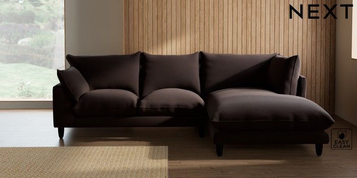 7.3.1 Buy Noa Deep Relaxed Sit Medium Corner Chaise - Right Hand Fine Chenille Easy Clean Chocolate Brown High Leg - Dark from the Seasons online shop Click here to use our website with more accessibility support, for example screen readers