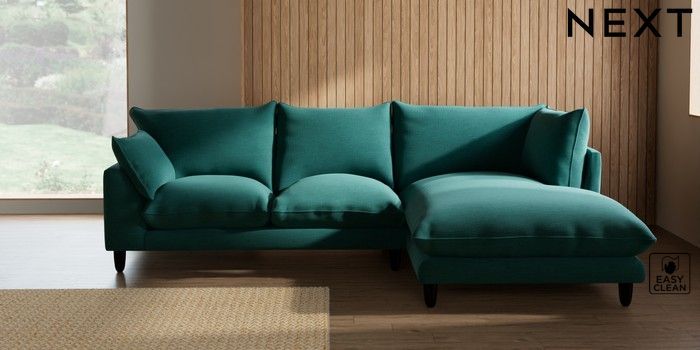 7.3.1 Buy Noa Deep Relaxed Sit Medium Corner Chaise - Right Hand Fine Chenille Easy Clean Dark Juniper Green High Leg - Dark from the Seasons online shop Click here to use our website with more accessibility support, for example screen readers