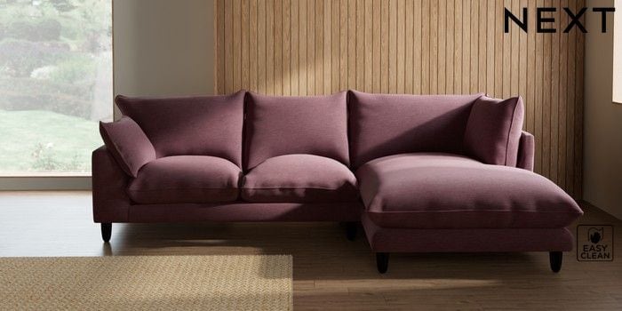 7.3.1 Buy Noa Deep Relaxed Sit Medium Corner Chaise - Right Hand Fine Chenille Easy Clean Mid Mulberry Purple High Leg - Dark from the Seasons online shop Click here to use our website with more accessibility support, for example screen readers