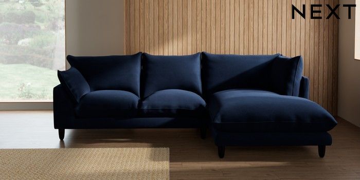 7.2.10 Buy Noa Deep Relaxed Sit Medium Corner Chaise - Right Hand Luxe Chenille Navy Blue High Leg - Dark from the Seasons online shop Click here to use our website with more accessibility support, for example screen readers
