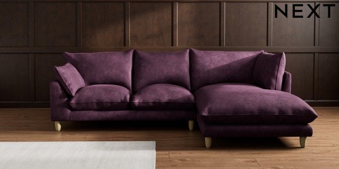 7.3.1 Buy Noa Deep Relaxed Sit Medium Corner Chaise - Right Hand Plush Chenille Dark Plum Purple High Leg - Light from the Seasons online shop Click here to use our website with more accessibility support, for example screen readers