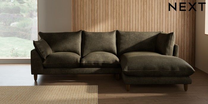 7.2.10 Buy Noa Deep Relaxed Sit Medium Corner Chaise - Right Hand Plush Chenille Moss Green High Leg - Mid from the Seasons online shop Click here to use our website with more accessibility support, for example screen readers