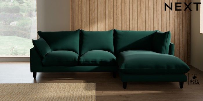 7.3.1 Buy Noa Deep Relaxed Sit Medium Corner Chaise - Right Hand Plush Velvet Easy Clean Bottle Green High Leg - Dark from the Seasons online shop Click here to use our website with more accessibility support, for example screen readers