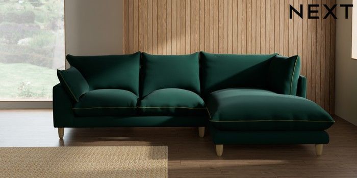 7.3.1 Buy Noa Deep Relaxed Sit Medium Corner Chaise - Right Hand Plush Velvet with Contrast Bottle Grn with Mid Olive Grn High Leg - Light from the Seasons online shop Click here to use our website with more accessibility support, for example screen readers