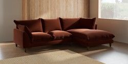 7.3.1 Buy Noa Deep Relaxed Sit Medium Corner Chaise - Right Hand Plush Velvet with Contrast Ginger Orange with Navy Blue High Leg - Mid from the Seasons online shop Click here to use our website with more accessibility support, for example screen readers