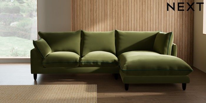 7.3.1 Buy Noa Deep Relaxed Sit Medium Corner Chaise - Right Hand Plush Velvet with Contrast Mid Olive Grn with Juniper Grn High Leg - Dark from the Seasons online shop Click here to use our website with more accessibility support, for example screen readers