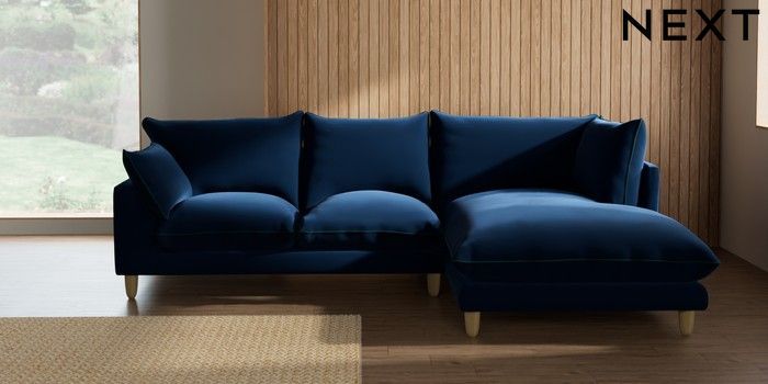 7.3.1 Buy Noa Deep Relaxed Sit Medium Corner Chaise - Right Hand Plush Velvet with Contrast Navy Blue with Bottle Green High Leg - Light from the Seasons online shop Click here to use our website with more accessibility support, for example screen readers