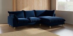 7.3.1 Buy Noa Deep Relaxed Sit Medium Corner Chaise - Right Hand Plush Velvet with Contrast Navy Blue with Ginger Orange High Leg - Light from the Seasons online shop Click here to use our website with more accessibility support, for example screen readers