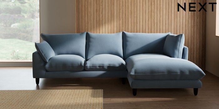 7.3.1 Buy Noa Deep Relaxed Sit Medium Corner Chaise - Right Hand Relaxed Linen Look Mid Blue High Leg - Dark from the Seasons online shop Click here to use our website with more accessibility support, for example screen readers
