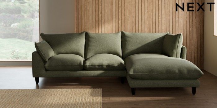 7.3.1 Buy Noa Deep Relaxed Sit Medium Corner Chaise - Right Hand Tweedy Chenille Mid Moss Green High Leg - Dark from the Seasons online shop Click here to use our website with more accessibility support, for example screen readers