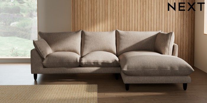 7.3.1 Buy Noa Deep Relaxed Sit Medium Corner Chaise - Right Hand Tweedy Chenille Mid Natural High Leg - Dark from the Seasons online shop Click here to use our website with more accessibility support, for example screen readers