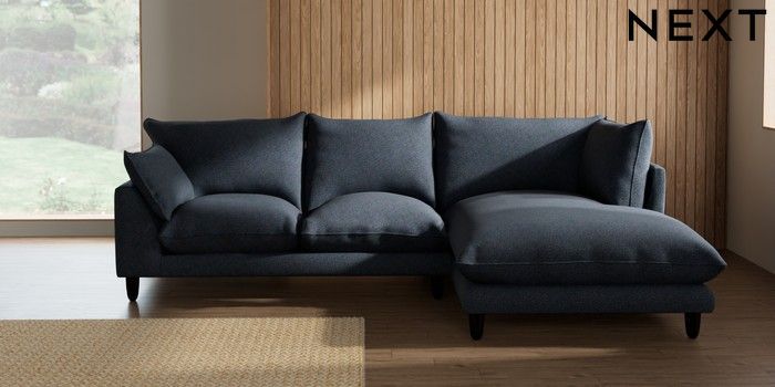 7.3.1 Buy Noa Deep Relaxed Sit Medium Corner Chaise - Right Hand Tweedy Chenille Navy Blue High Leg - Dark from the Seasons online shop Click here to use our website with more accessibility support, for example screen readers