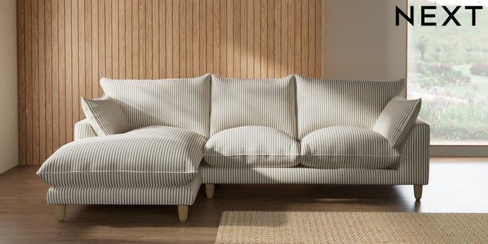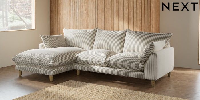 7.3.1 Buy Noa Deep Relaxed Sit Medium Sofa Chaise - Left Hand Chenille Stripe Moss Green High Leg - Light from the Seasons online shop Click here to use our website with more accessibility support, for example screen readers