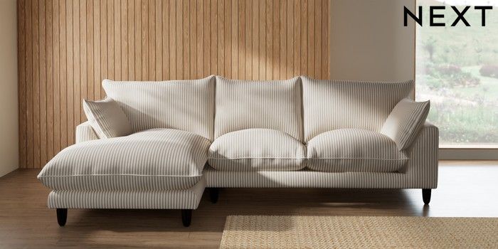 7.3.1 Buy Noa Deep Relaxed Sit Medium Sofa Chaise - Left Hand Chenille Stripe Natural High Leg - Dark from the Seasons online shop Click here to use our website with more accessibility support, for example screen readers