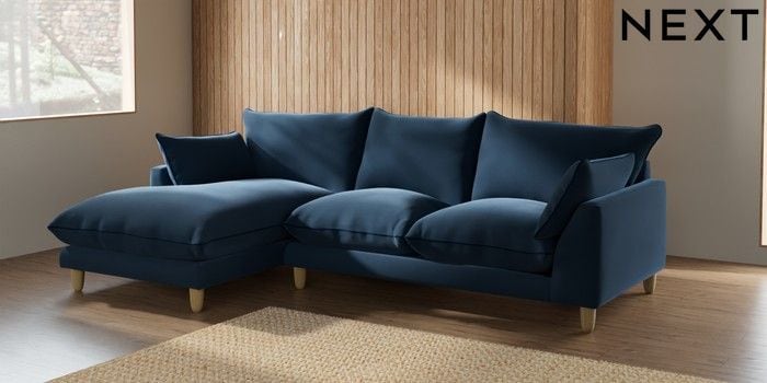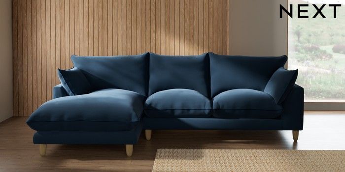 7.3.1 Buy Noa Deep Relaxed Sit Medium Sofa Chaise - Left Hand Plush Velvet with Contrast Airforce Blue with Navy Blue High Leg - Light from the Seasons online shop Click here to use our website with more accessibility support, for example screen readers