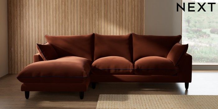 7.3.1 Buy Noa Deep Relaxed Sit Medium Sofa Chaise - Left Hand Plush Velvet with Contrast Ginger Orange with Navy Blue High Leg - Dark from the Seasons online shop Click here to use our website with more accessibility support, for example screen readers