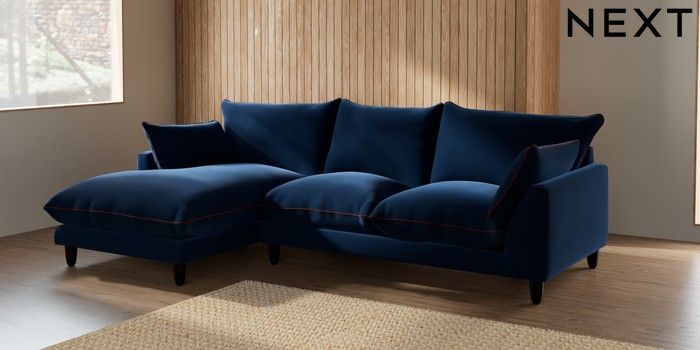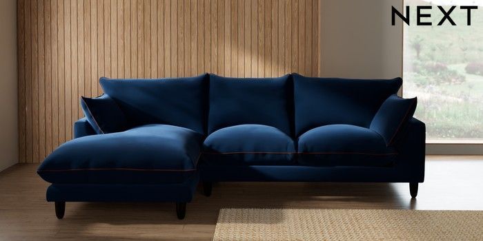 7.3.1 Buy Noa Deep Relaxed Sit Medium Sofa Chaise - Left Hand Plush Velvet with Contrast Navy Blue with Ginger Orange High Leg - Dark from the Seasons online shop Click here to use our website with more accessibility support, for example screen readers