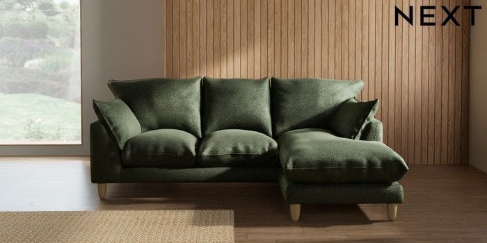 7.2.10 Buy Noa Deep Relaxed Sit Small Sofa Chaise - Universal Boucle Chenille Dark Moss Green High Leg - Light from the Seasons online shop Click here to use our website with more accessibility support, for example screen readers