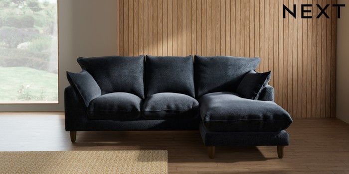 7.2.10 Buy Noa Deep Relaxed Sit Small Sofa Chaise - Universal Boucle Chenille Dark Slate Blue High Leg - Mid from the Seasons online shop Click here to use our website with more accessibility support, for example screen readers