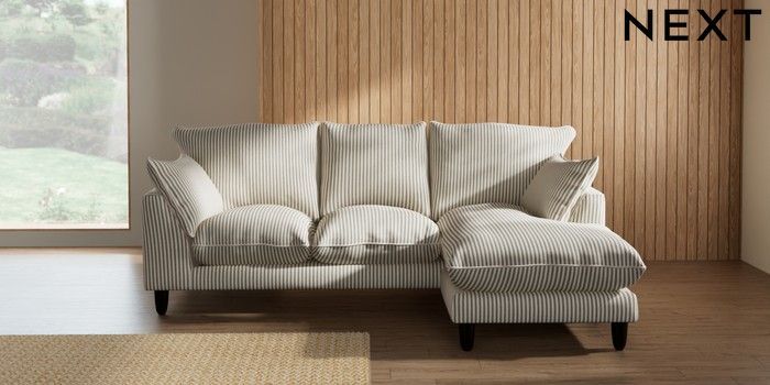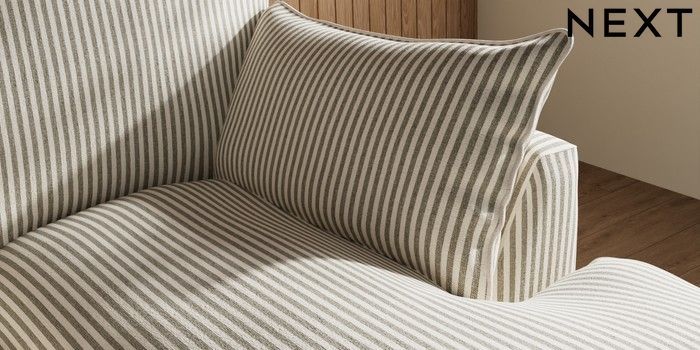 7.3.1 Buy Noa Deep Relaxed Sit Small Sofa Chaise - Universal Chenille Stripe Moss Green High Leg - Dark from the Seasons online shop Click here to use our website with more accessibility support, for example screen readers