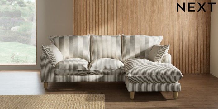 7.3.1 Buy Noa Deep Relaxed Sit Small Sofa Chaise - Universal Chenille Stripe Moss Green High Leg - Light from the Seasons online shop Click here to use our website with more accessibility support, for example screen readers