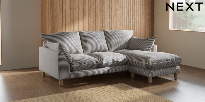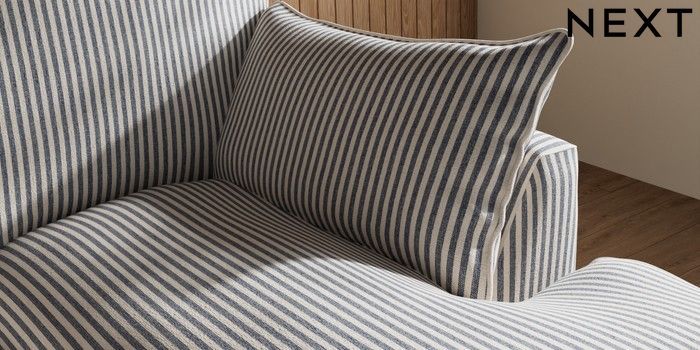 7.3.1 Buy Noa Deep Relaxed Sit Small Sofa Chaise - Universal Chenille Stripe Slate Blue High Leg - Light from the Seasons online shop Click here to use our website with more accessibility support, for example screen readers