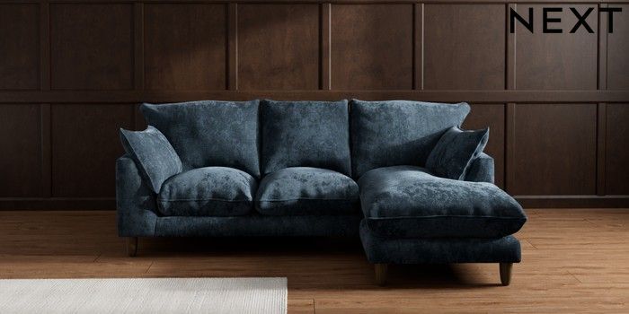 7.2.10 Buy Noa Deep Relaxed Sit Small Sofa Chaise - Universal Distressed Velour Midnight Blue High Leg - Mid from the Seasons online shop Click here to use our website with more accessibility support, for example screen readers