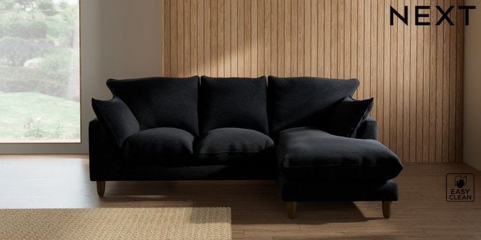 7.2.10 Buy Noa Deep Relaxed Sit Small Sofa Chaise - Universal Fine Chenille Easy Clean Black High Leg - Mid from the Seasons online shop Click here to use our website with more accessibility support, for example screen readers