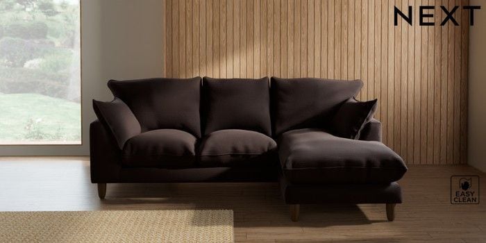 7.2.10 Buy Noa Deep Relaxed Sit Small Sofa Chaise - Universal Fine Chenille Easy Clean Chocolate Brown High Leg - Mid from the Seasons online shop Click here to use our website with more accessibility support, for example screen readers