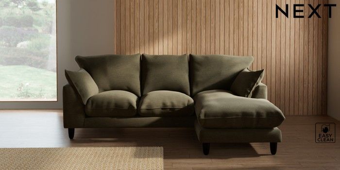 7.3.1 Buy Noa Deep Relaxed Sit Small Sofa Chaise - Universal Fine Chenille Easy Clean Dark Moss Green High Leg - Dark from the Seasons online shop Click here to use our website with more accessibility support, for example screen readers