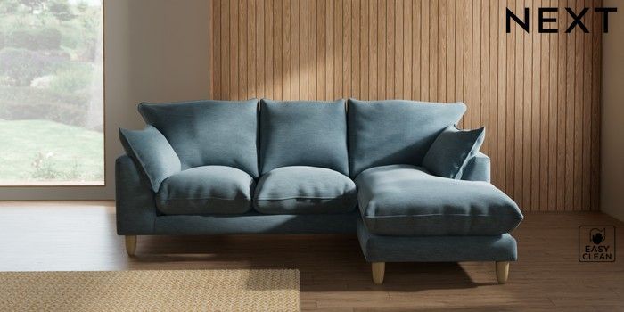 7.2.10 Buy Noa Deep Relaxed Sit Small Sofa Chaise - Universal Fine Chenille Easy Clean Mid Blue High Leg - Light from the Seasons online shop Click here to use our website with more accessibility support, for example screen readers
