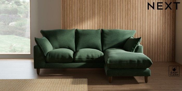 7.3.1 Buy Noa Deep Relaxed Sit Small Sofa Chaise - Universal Fine Chenille Easy Clean Mid Khaki Green High Leg - Mid from the Seasons online shop Click here to use our website with more accessibility support, for example screen readers