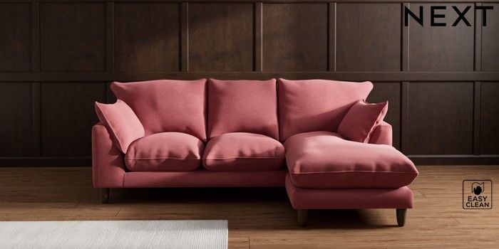 7.2.10 Buy Noa Deep Relaxed Sit Small Sofa Chaise - Universal Fine Chenille Easy Clean Mid Pink High Leg - Mid from the Seasons online shop Click here to use our website with more accessibility support, for example screen readers