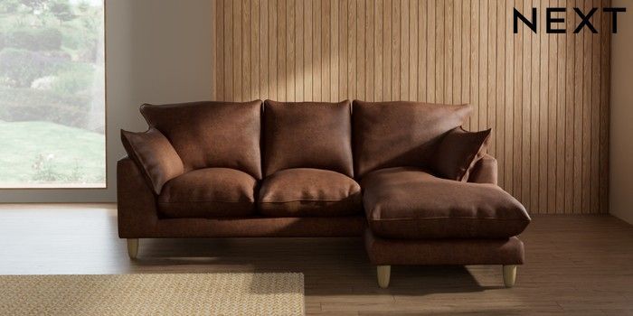 7.3.1 Buy Noa Deep Relaxed Sit Small Sofa Chaise - Universal Monza Faux Leather Easy Clean Chestnut Brown High Leg - Light from the Seasons online shop Click here to use our website with more accessibility support, for example screen readers