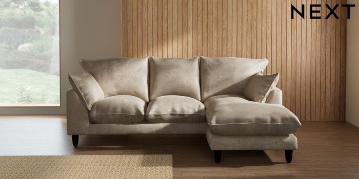 7.2.10 Buy Noa Deep Relaxed Sit Small Sofa Chaise - Universal Plush Chenille Light Natural High Leg - Dark from the Seasons online shop Click here to use our website with more accessibility support, for example screen readers