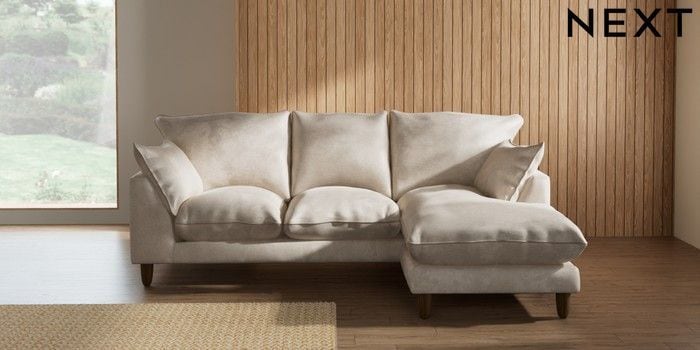 7.2.10 Buy Noa Deep Relaxed Sit Small Sofa Chaise - Universal Plush Chenille Oyster High Leg - Mid from the Seasons online shop Click here to use our website with more accessibility support, for example screen readers