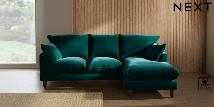 7.3.1 Buy Noa Deep Relaxed Sit Small Sofa Chaise - Universal Plush Velvet Easy Clean Juniper Green High Leg - Mid from the Seasons online shop Click here to use our website with more accessibility support, for example screen readers