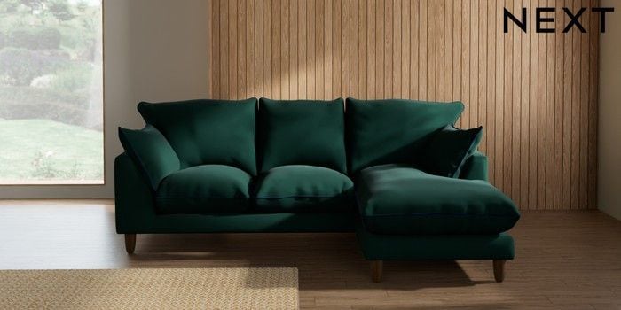 7.3.1 Buy Noa Deep Relaxed Sit Small Sofa Chaise - Universal Plush Velvet with Contrast Bottle Green with Navy Blue High Leg - Mid from the Seasons online shop Click here to use our website with more accessibility support, for example screen readers