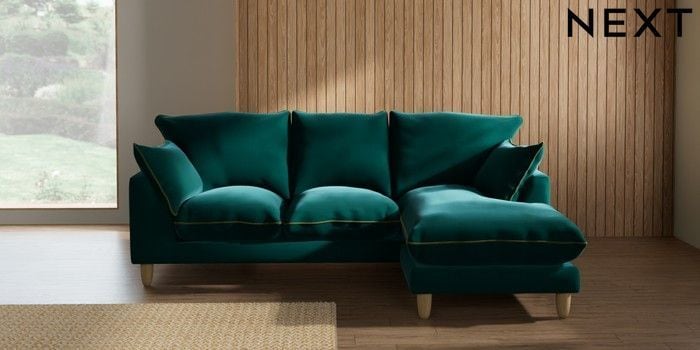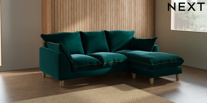 7.3.1 Buy Noa Deep Relaxed Sit Small Sofa Chaise - Universal Plush Velvet with Contrast Juniper Grn with Mid Olive Grn High Leg - Light from the Seasons online shop Click here to use our website with more accessibility support, for example screen readers