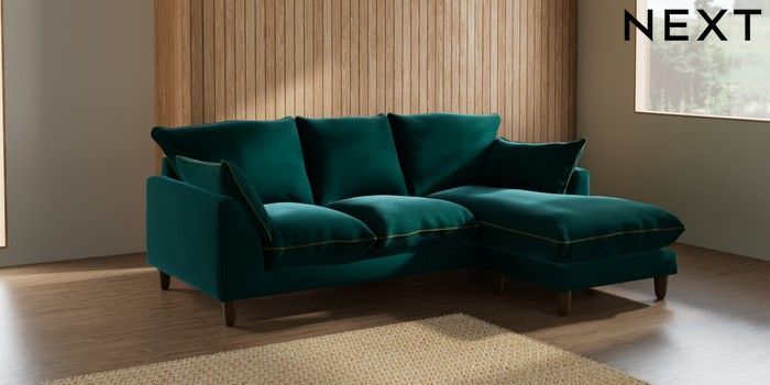 7.3.1 Buy Noa Deep Relaxed Sit Small Sofa Chaise - Universal Plush Velvet with Contrast Juniper Grn with Mid Olive Grn High Leg - Mid from the Seasons online shop Click here to use our website with more accessibility support, for example screen readers